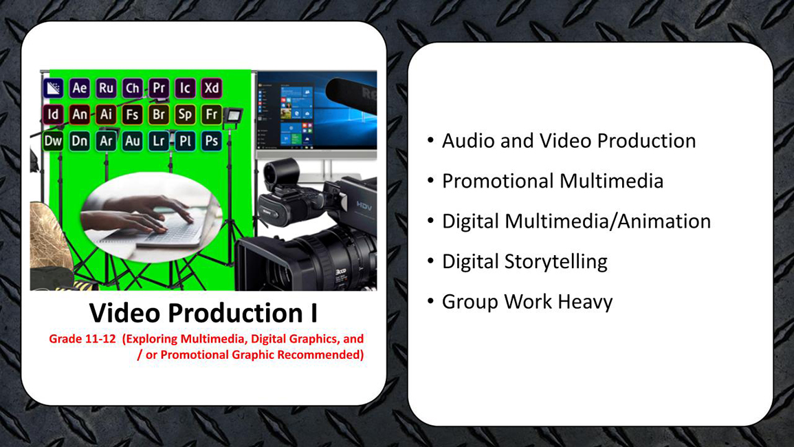Each day millions of people watch videos on their televisions, computer screens, or phones. Audio and video technologies have become an integral part of our daily life. In this course, students will learn about audio and video productions, promotional media design, digital media, and digital storytelling. This project-based course will challenge students with creative thinking and real-world problem-solving activities. This course is available to Juniors, and Seniors only