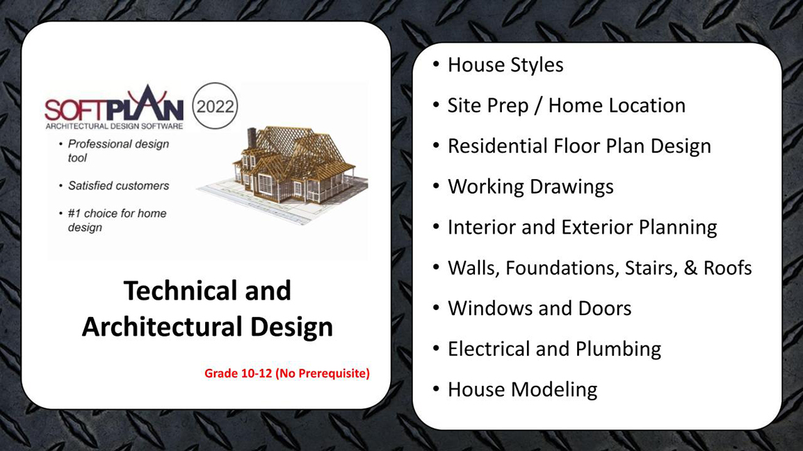 Everything that we build, or manufacture requires accurate and precise technical drawings. In this course, students will design, sketch, and make technical drawings, illustrations, models, or prototypes of real-world design problems using the professional Computer-Aided Drafting and Design (CADD) programs. In addition, students will explore traditional and contemporary trends in architecture. This course is especially recommended for future engineering, construction, and architecture students. This course is available to Sophomores, Juniors, and Seniors only.